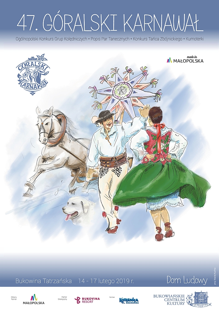14 lutego festiwal zainauguruje barwny przejazd kapel i zaproszonych gości zaprzęgami konnymi przez centrum Bukowiny. Tego samego dnia, o godzinie 15.00 na scenie Domu Ludowego do konkursu staną pierwsze grupy kolędnicze. Wieczorną część 47. Góralskiego Karnawału rozpocznie występ zespołu regionalnego „Śwarni Łojce” z Sadku Kostrzy. Będzie to wspaniała okazja by poznać kulturę Lachów Szczyrzyckich. I potem przyjdzie czas na te, budzące wiele emocji, zmagania w konkursie tańca zbójnickiego i popisie par tanecznych. Piątek to całodniowe przesłuchania konkursowe. O 19.00 wystąpi romski zespół „Kałe Bała” z Czarnej Góry. Karnawałowa sobota to zarówno ostatnie przesłuchania konkursowe, w tym widowiskowych, plenerowych grup kolędniczych jak i czas IX zimowej Krajowej Wystawy Polskich Owczarków Podhalańskich. Wraz z Karoliną Cichą & Spółką organizatorzy zapraszają na wieczór tatarski.