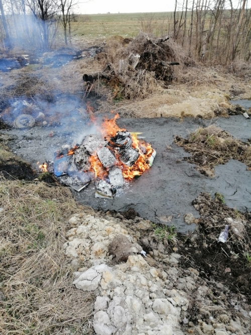 W Waksmundzie, w polach na tzw. Brzezince, ktoś rozpalił ognisko ze śmieci.