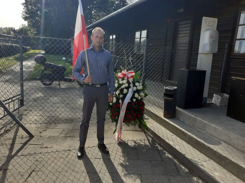 Po przyjeździe do Oświęcimia, niewielkie trudności z powodu zamknięcia jednej z dróg prowadzących do celu. Po przyjeździe na parking wewnętrzny przy ul. Więźniów Oświęcimia 20, udaliśmy się do Muzeum Auschwitz, by złożyć wieniec i odczytać fragment raportu Witolda Pileckiego. Raport ten, miał być odczytany w związku z " Narodowym Czytaniem Raportu Witolda w 80 rocznicę ochotniczej misji Witolda Pileckiego w KL Auschwitz".
