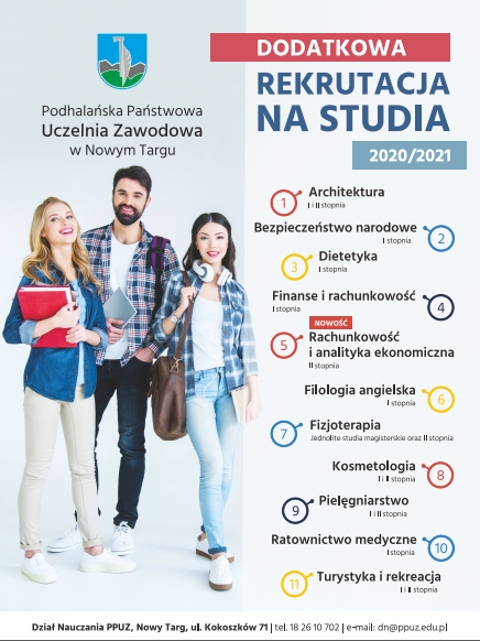 Nadal można zapisać się na: Architekturę I i II stopnia, bezpieczeństwo narodowe I stopnia, dietetykę I stopnia, finanse i rachunkowość I stopnia, rachunkowość i analitykę ekonomiczną II stopnia, filologię angielską I stopnia, fizjoterapię jednolite studia magisterskie oraz II stopnia, kosmetologię I i II stopnia, pielęgniarstwo I i II stopnia, ratownictwo medyczne I stopnia i turystykę i rekreację I i II stopnia.