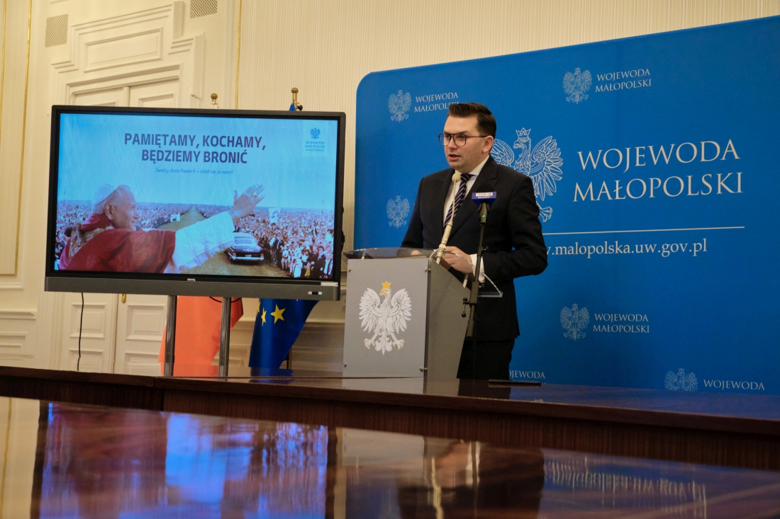 - W obliczu skrajnie ukierunkowanych manipulacji i niezwykle krzywdzących opinii dotyczących Świętego Jana Pawła II, które pojawiły się w ostatnich dniach w przestrzeni publicznej, zwracam się do Państwa z apelem o podjęcie specjalnych uchwał w obronie Jego dobrego imienia. Niech to będzie wspólne i jednoznaczne świadectwo zatroskania o dziedzictwo największego z rodu Polaków – wspaniałego człowieka i niekwestionowanego autorytetu, któremu tak wiele zawdzięcza nasza Ojczyzna i cały świat – mówi wojewoda małopolski Łukasz Kmita, który swoją inicjatywę przedstawił na dzisiejszym briefingu prasowym.