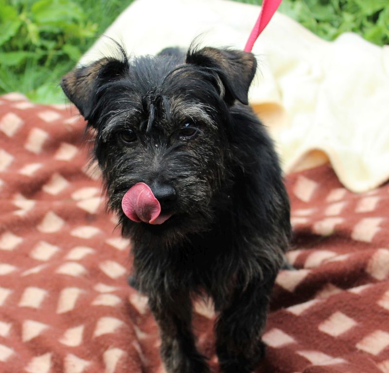 - pies, mały, czarno-szary, szorstkowłosy, 8 miesięcy