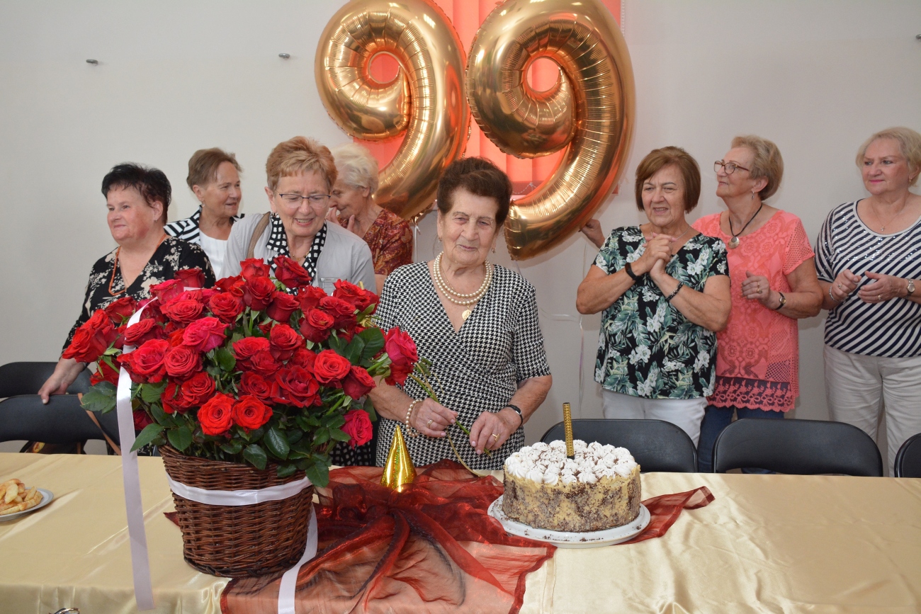 Uroczystość z tortem, szampanem, życzeniami i śpiewem zorganizowano w sali kominkowej Spółdzielczego Domu Kultury.