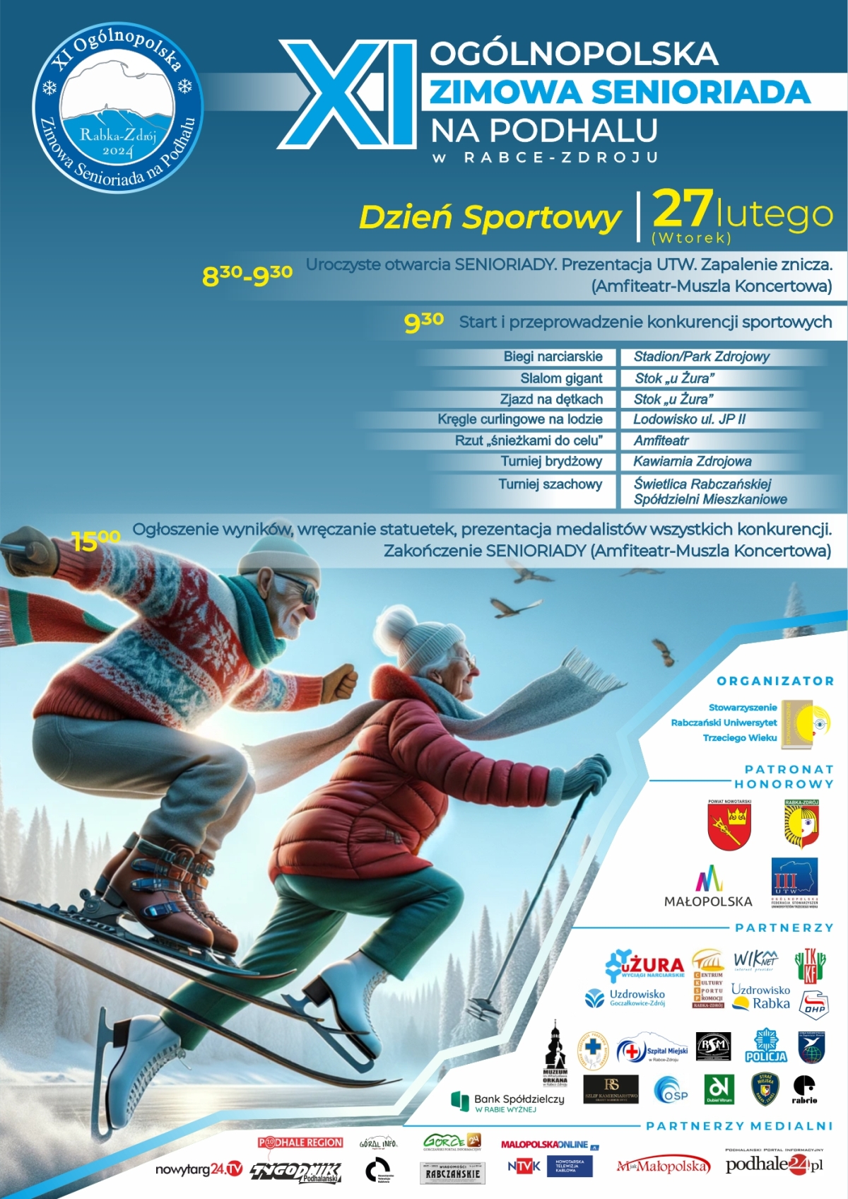 Najliczniej obsadzoną konkurencją będzie slalom gigant na stoku „U Żura” - 99 slalomistów. W tym miejscu 39 osób zjedzie na dętkach. Na Stadionie Miejskim 59 biegaczy na nartach stylem klasycznym powalczy o medale. Lodowisko - tam w „naszej” rabczańskiej konkurencji kręgle curlingowe na lodzie wystartuje 41 osób. Amfiteatr - 36 rzucających „śnieżkami do celu”. Kawiarnia Zdrojowa miejscem „szlemów, szlemików i bez jednej” dla 30 brydżystów. 16 szachistów w świetlicy Rabczańskiej Spółdzielni Mieszkaniowej będzie się starało powiedzieć „szach - mat”.