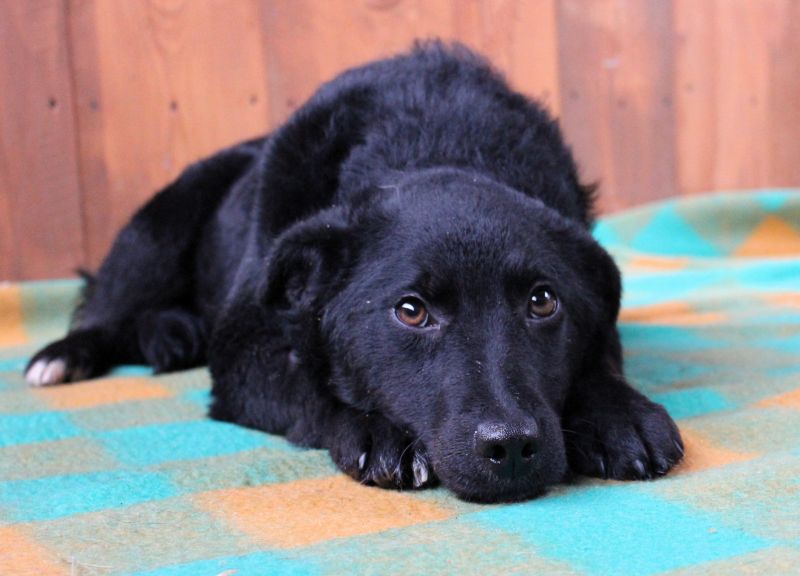 - suka, mała, czarna z białym końcówkami łap, gładka, 8 miesięcy