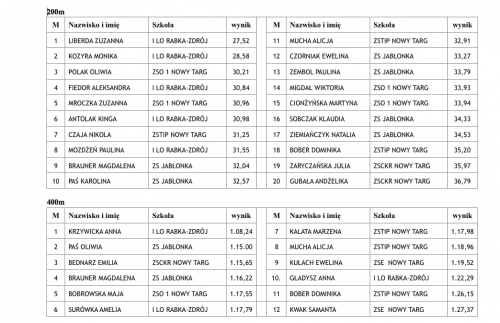 Zawodnicy i zawodniczki za zajęcie miejsc I – III w poszczególnych konkurencjach otrzymali medale i dyplomy.