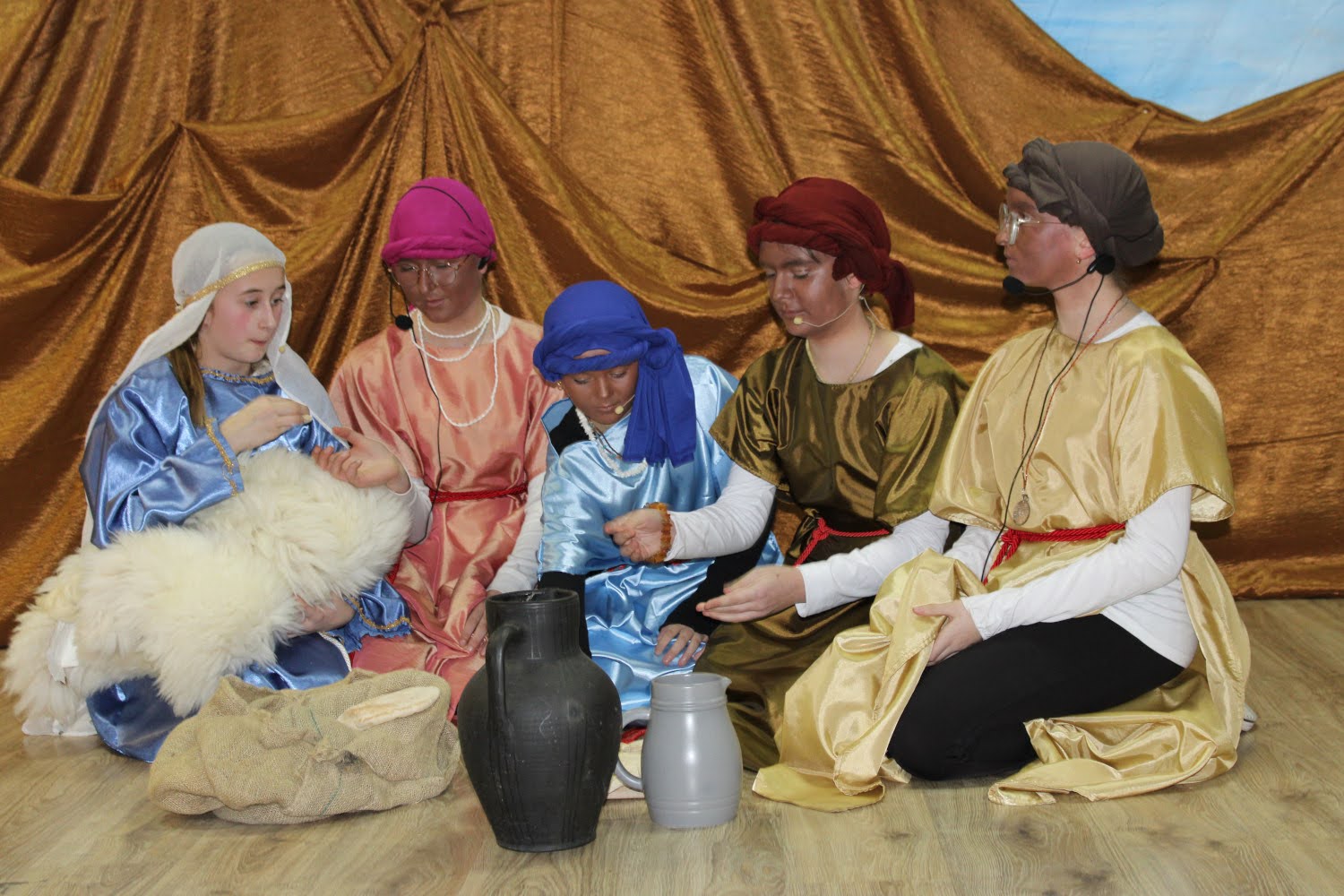 Przedstawienie jasełkowe "Nasze Betlejem" przeprowadziło widzów przez różnorodne miejsca. Historia rozpoczęła się w Niebie, gdzie Święty Piotr, zachęcony przez anioły, zdecydował się unowocześnić system przyjmowania wiernych, jednak wskutek nieoczekiwanego błędu w niebiańskim systemie komputerowym, Matka Boska z Dzieciątkiem została omyłkowo przeniesiona na ziemię XXI wieku. Wędrując przez różne zakamarki świata, odwiedziła ona góralską chatę, afrykańską wioskę, a także ogarniętą wojną Ukrainę. Każda z tych scen była przesycona głębokim przesłaniem, przypominając widzom, że Maleńka Miłość, która narodziła się w Betlejem, wciąż rodzi się w ludzkich sercach, jednocząc je we wspólnej radości i nadziei. Scenarzystką i reżyserką Jasełek była pani Renata Lipkowska.