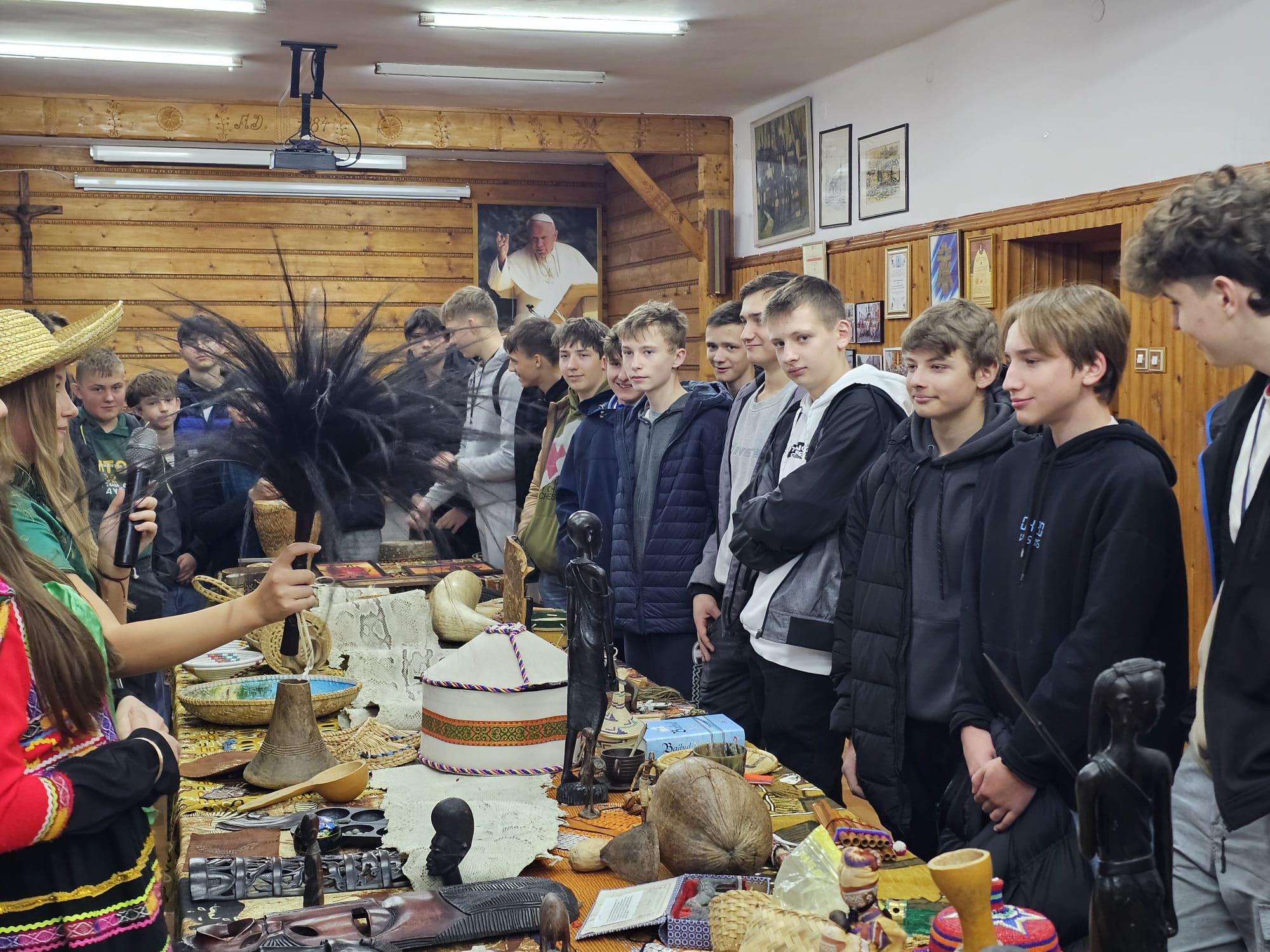 Nie zabrakło także radosnych akcentów - uczniowie uczestniczyli w warsztatach śpiewu piosenek w języku suahili oraz mogli obejrzeć i dotknąć misyjne pamiątki prosto z Afryki - kolorowe tkaniny, instrumenty i rękodzieło.