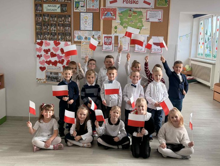 Tego dnia został również zakończony projekt patriotyczny "Polak Mały", w którym z wielkim zapałem uczestniczyły dzieci z oddziału przedszkolnego oraz klasy pierwszej. Przez kilka dni najmłodsi pod opieką Weroniki Murzydło i Celiny Błaszczyk odkrywali tajemnice polskich symboli narodowych, słuchali legend, a także poznawali wiersze i piosenki patriotyczne, które szybko stały się szkolnymi przebojami. Wspólna praca i zabawa, połączone z twórczą radością pozwoliły dzieciom nie tylko stworzyć piękne biało-czerwone prace, ale też poczuć dumę z bycia Polakami. Pani dyrektor Agata Pawlikowska przypomniała na zakończenie, że wolność jest darem, o który musimy troszczyć się każdego dnia i że miłość do Ojczyzny wyraża się nie tylko w wielkich czynach, ale też w codziennej uczciwości, wzajemnym szacunku i trosce o drugiego człowieka.