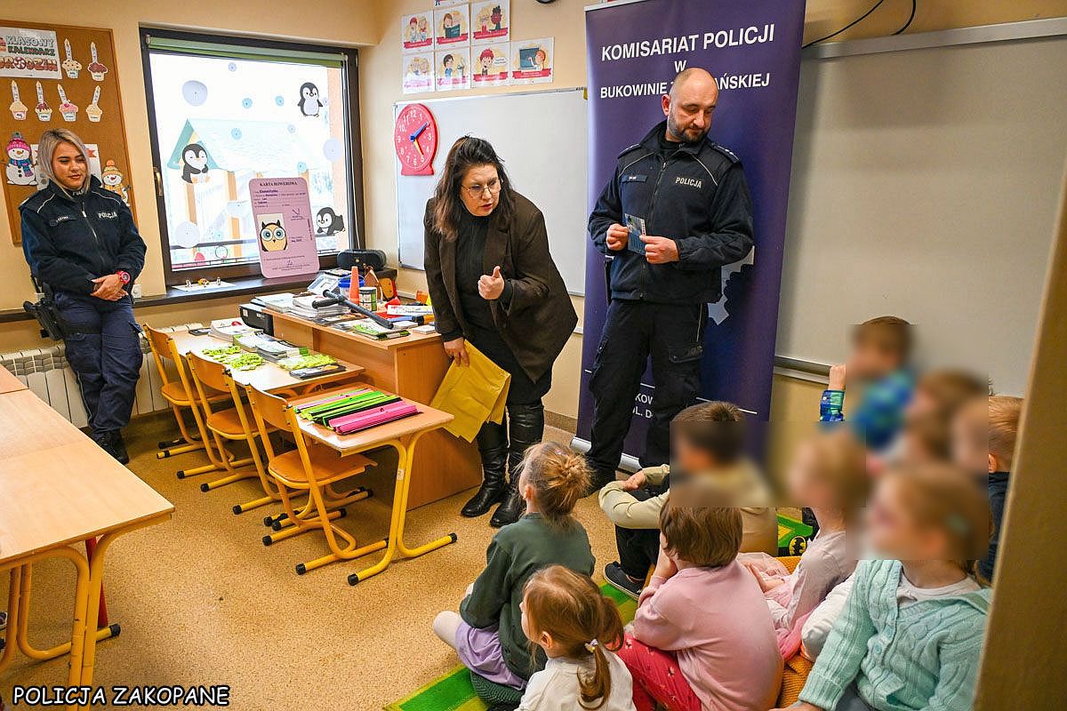 Dzielnicowi z Komisariatu Policji w Bukowinie Tatrzańskiej spotkali się z uczniami szkoły podstawowej w Rzepiskach w ramach ogólnopolskiej akcji "Kręci mnie bezpieczeństwo w zimie". Funkcjonariusze przypomnieli najmłodszym jak bezpiecznie spędzać zimowy wypoczynek i czego unikać, by było bezpieczne.