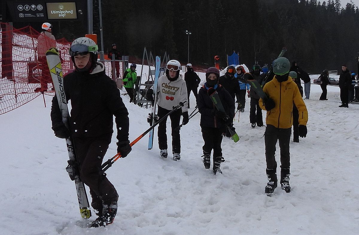 Na stoku i pod stokiem bawiło się w sumie pół setki uczennic i uczniów klas o profilach wojskowym, policyjnym, pożarniczym. Warunki pogodowe były tego dnia trudniejsze, ale na dobrze przygotowanym stoku zawodniczki i zawodnicy tylko śmigali między bramkami ? oczywiście pod okiem swoich nauczycieli i pani dyrektor. Część z nich wykazała się dużymi umiejętnościami, reszta ? odwagą i determinacją, bo rywalizacja była zacięta. Zawsze też dorocznej imprezie towarzyszy fajna, zabawowa atmosfera.