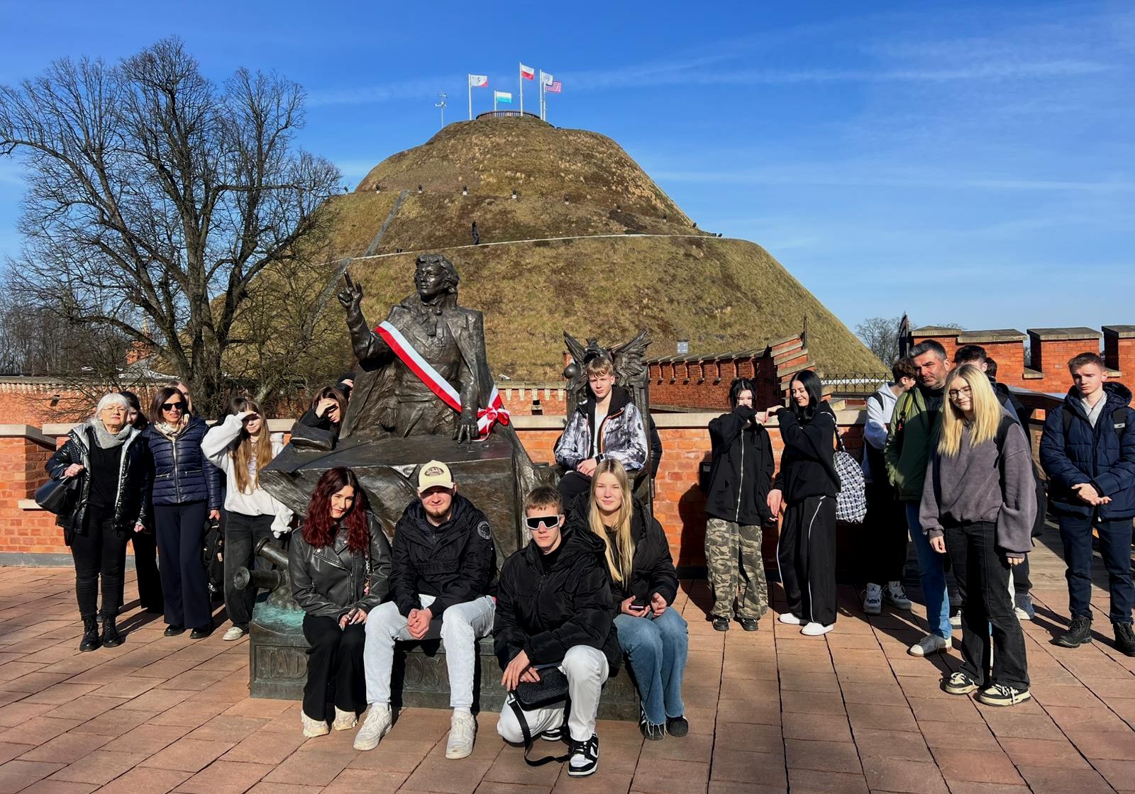Podziwiając z góry panoramę Krakowa, można było rozmawiać o jego zbytkach i dziedzictwie przeszłości. Z Kopca Kościuszki wycieczka udała się pod Wawel, by przejść Drogą Królewską (spod smoka), poznając układ obiektów i wież zamkowych na wawelskim wzgórzu. Kolejne etapy wędrówki po Krakowie to ulice Kanonicza i Grodzka, a ta doprowadziła kadetów na rynek, przed tablicę upamiętniającą przysięgę na krakowskim rynku, która dała początek insurekcji kościuszkowskiej.