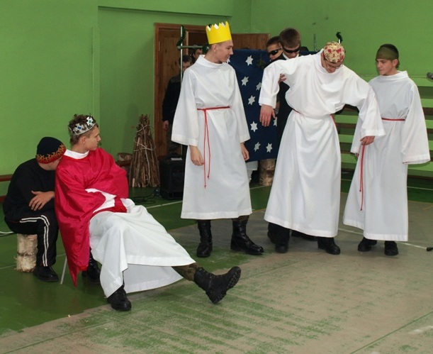 Ostatnich kilku tygodni młodzież z pierwszej klasy szkoły z ul. Św. Katarzyny nie zmarnowała. Pod okiem polonistki Joanny Kapel i anglistki Anny Stołowskiej przygotowała przedstawienie, które co chwilę wśród zgromadzonych na widowni starszych kolegów wywoływało salwy śmiechu. - Przygotowywaliśmy się od początku grudnia - mówi Joanna Kapel, która wcześniej, na studiach, prowadziła kółko teatralne, a obecnie nad takowym czuwa w nowotarskiej szkole. - Chciałabym, by takie jasełka na wesoło stały się szkolną tradycją. W tym roku przygotowała je pierwsza klasa wojskowa - wszystkich 21 uczniów.