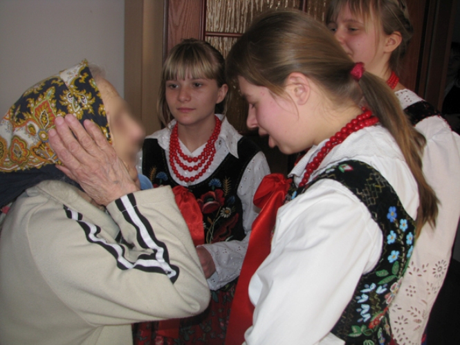 W grudniu 2010 r. udaliśmy się do Przytuliska Św. Brata Alberta w Grywałdzie z krótkim montażem słowno-muzycznym z okazji zbliżających się Świąt Bożego Narodzenia. Kolędowaliśmy wraz z podopiecznymi, a na zakończenie każda babcia i siostra opiekująca się starszymi oraz obsługa otrzymali od nas stroik świąteczny i aniołki z masy solnej, które wykonaliśmy na zajęciach plastycznych. Na uroczyste zakończenie projektu pojechaliśmy do Nowego Targu, gdzie każdy uczestnik otrzymał książkę oraz imienne podziękowanie za udział i działalność w wolontariacie.