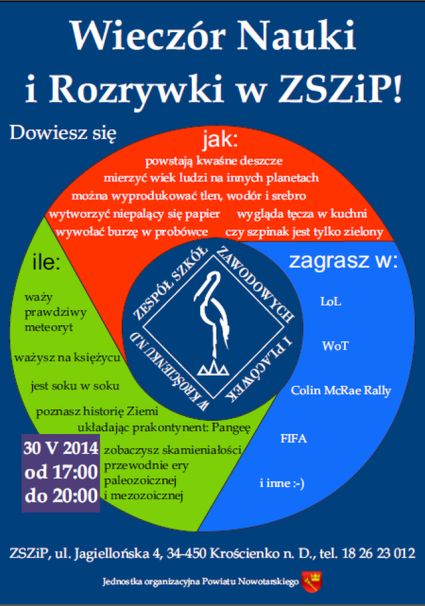 Zespół Szkół Zawodowych i Placówek w Krościenku nad Dunajcem zaprasza na Wieczór nauki.