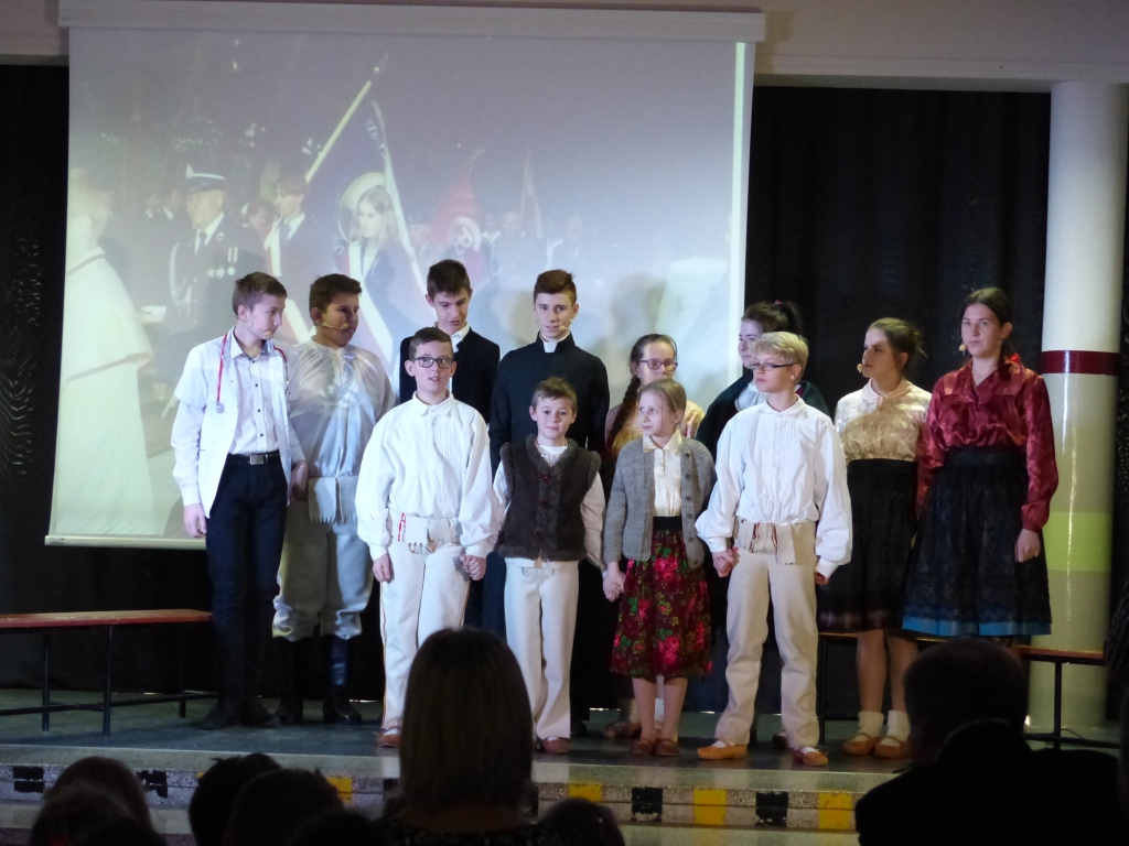 Tymi słowami rozpoczęto opowieść o życiu błogosławionego Spiszaka, którego setne urodziny świętowano 4 grudnia najpierw w łapszańskiej parafii, a potem 6 grudnia w szkole w Łapszach Niżnych. Wielka radość - wszyscy razem pragnęliśmy cieszyć się tym wyjątkowym wydarzeniem - ufając, że razem z nami świętuje nasz Błogosławiony patrząc na nas z okien nieba. Radość wyrażali tak żywo i z energią śpiewający piosenki, a szczególnie pokazali to najmłodsi uczniowie z klas 0 - III w piosence "Każdy może być święty."