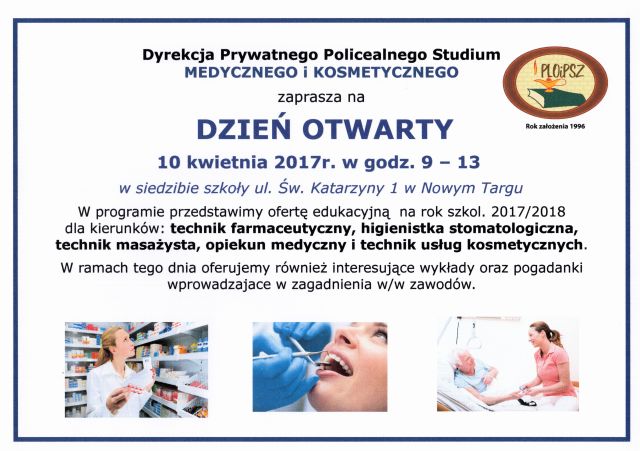 W programie - prezentacja oferty edukacyjnej na rok szkol. 2017/2018 jak też interesujące wykłady oraz pogadanki wprowadzające w zagadnienia nauczanych zawodów.