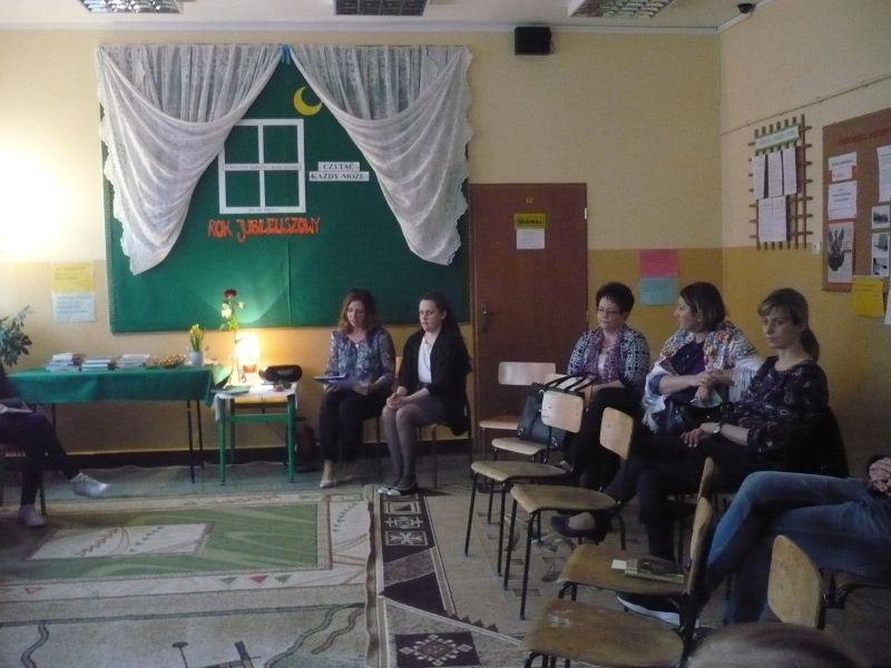 Przy blasku nocnych lampek wsłuchiwaliśmy się we fragmenty literatury, którą czytali rodzice, nauczyciele i uczniowie. Gościem honorowym była Wioletta Dąbrowska (Sandecka). Młoda absolwentka oczarowała wszystkich swoimi nastrojowymi wierszami, często o charakterze głęboko osobistym. Spotkanie było bardzo udane i wyjątkowe.