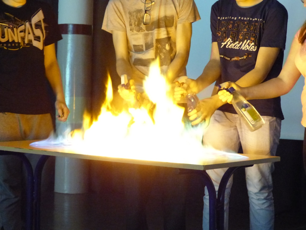 Odbyły się zajęcia warsztatowe w klasach oraz pełny ognia pokaz w holu szkoły.