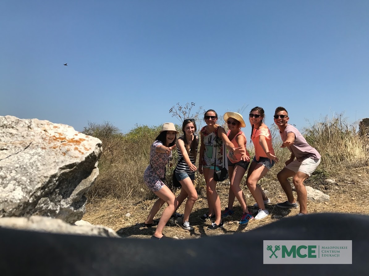 „Kolejny tydzień naszego wyjazdu przeminął błyskawicznie. Praktyki w zakładach pracy są bardzo przyjemne i za każdym razem staramy się wynieść z nich jak największą wiedzę praktyczną. Każdy z nas jest zadowolony z miejsca, w którym pracuje. Nie brakuje też czasu na plażowanie i odpoczynek. Codziennie mamy przyjemność przygotowanie i próbowania nowych, zróżnicowanych i niezwykle smacznych potraw kuchni greckiej. W chwilach wolnych od pracy możemy również pomóc przy koszeniu trawnika czy innych pracach ogrodniczych. Wykonujemy również prace z własnej inicjatywy, jak generalne sprzątanie hostelu. W poniedziałek, dysponując dniem wolnym od pracy pojechaliśmy na plażę przy której mogliśmy obserwować meduzy występujące w znacznych ilościach. We wtorek odbyła się wycieczka organizowana przez Filoxenię do Koryntu. Zobaczyliśmy dużo ciekawych miejsc wraz ze starożytnymi ruinami miasta.