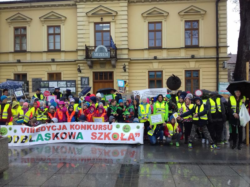 W trakcie pochodu każdy przechodzień mógł usłyszeć i zobaczyć niejedną przestrogę. Przez godzinę słychać było teksty przyśpiewek, rymowanek i piosenek wygłaszanych przez uczniów. Wszyscy z zaciekawieniem i pełnym podziwem obserwowali młodsze dzieciaki wesoło skandujące i przekazujące niezbędne do zachowania bezpieczeństwa treści. Podczas przemarszu uczniowie i nauczyciele wręczali przechodniom i kierowcom różnego rodzaju odblaski, przypominając jednocześnie o ich noszeniu! Należy podkreślić, że były one wykonane własnoręcznie przez uczniów klas 1 – 2.