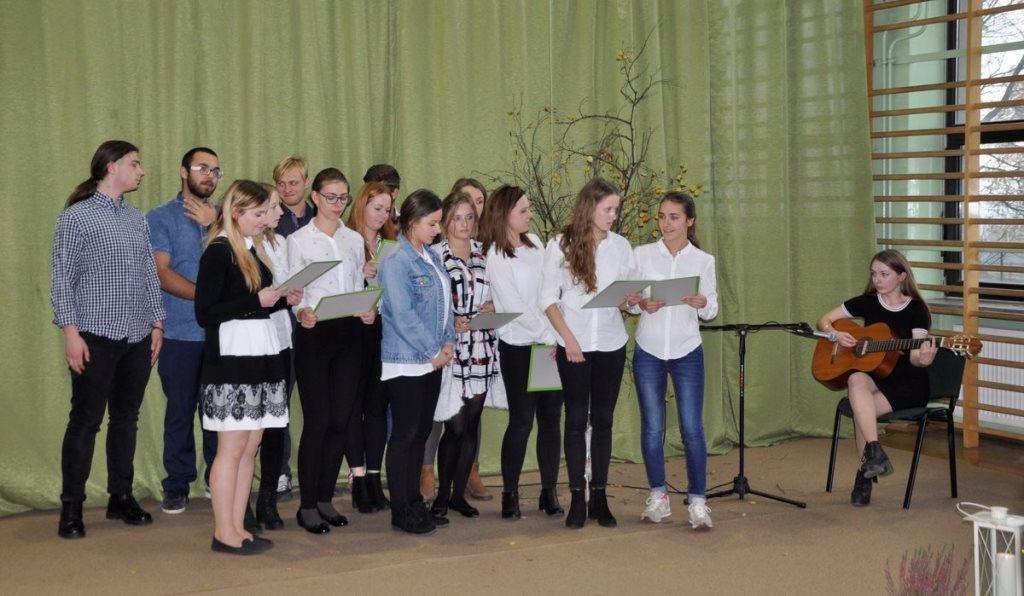 Po przywitaniu i odśpiewaniu hymnu narodowego prowadzący akademię Kamil Kądziołka i Gabriela Kotra, uczniowie z klasy IV Technikum Weterynaryjnego przedstawili krótką historię walki Polaków o niepodległość. Wysłuchano również refleksji na temat wolności, którą przedstawiła Adrianna Jarosz z klasy IV Technikum Weterynaryjnego. W dalszej części programu śpiewem uczczono tych, którzy walczyli o naszą wolność. Na początku zaprezentowali się wszyscy nauczyciele, którzy odśpiewali „Rotę”. Następnie uczniowie poszczególnych klas wraz z wychowawcami śpiewali przygotowane wcześniej pieśni patriotyczne: