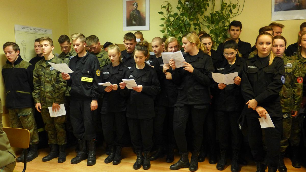 Słowno-muzyczne widowisko klasy I wojskowo-policyjna i III wojskowo-policyjno-pożarnicza przygotowywały pod okiem swoich nauczycieli: prof. Joanny Kapel i prof. Jakuba Mrugały, który jednocześnie jest opiekunem scholi. Na półgodzinny program spięty przejmującym wykonaniem kultowej już „Śpiewki 1920”, z teledysku Nataszy Urbańskiej, czyli „Śpiewajmy pamięć…” – złożyły się patriotyczne pieśni z towarzyszeniem akordeonu, wiersze, a także zainscenizowana rozmowa dziadka z wnukiem o ciągu historycznych wydarzeń i walk, które doprowadziły do odzyskania przez Polskę niepodległości.