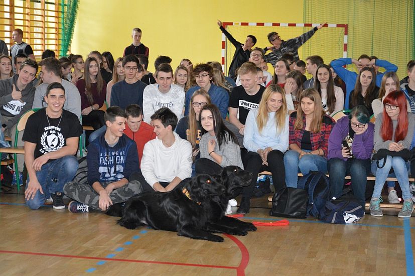 Strażacy mówili również o intensywnym szkoleniu, jakie muszą przejść czworonodzy razem ze swoimi przewodnikami, aby móc uczestniczyć w akcjach poszukiwawczych. Trwa ono dwa lata i jest bardzo intensywne. Na zakończenie strażacy wyczerpująco odpowiedzieli na pytania licealistów.