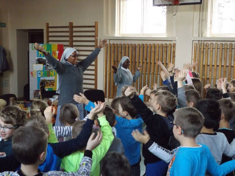 Uczniowie podarowali siostrom klaweriankom przybory szkolne z prośbą o przekazanie ich potrzebującym dzieciom na misjach. Wspólnemu przeżywaniu tego dnia towarzyszyła wielka radość i śpiew, który porwał wszystkich, nie tylko najmłodszych.
