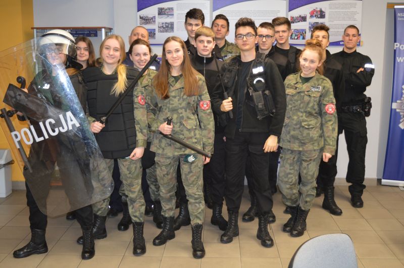 Głównym tematem rozmowy była praca w policji oraz środki przymusu bezpośredniego stosowane przez policjantów. Kadeci dowiedzieli się o rodzajach śpb i zasadach ich stosowania. Mieli możliwość zapoznania się poprzez bezpośredni kontakt z nimi.