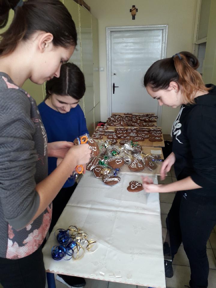 Uczniowie do szpitala udali się z wizytą, aby wspólnie świętować Dzień Babci i Dziadka. Atmosfera tego niecodziennego spotkania była bardzo ciepła i rodzinna. Seniorzy zostali obdarowani słodkościami – piernikami w kształcie serduszek. Piernikowe prezenty to oczywiście wypiek własny uczniów na szkolnej kuchni.