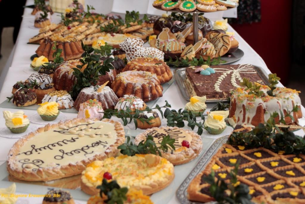Mazurki, babki i babeczki kusiły zapachem, pięknymi kolorami ale przede wszystkim były ucztą dla podniebienia. Smakowały wybornie. W końcu nikt nie wyobraża sobie wielkanocnego stołu bez babki. Na Kokoszkowie królowały pięknie udekorowane tradycyjne babki z ciasta drożdżowego parzonego, ale również te współczesne z ciasta biszkoptowo – tłuszczowego.