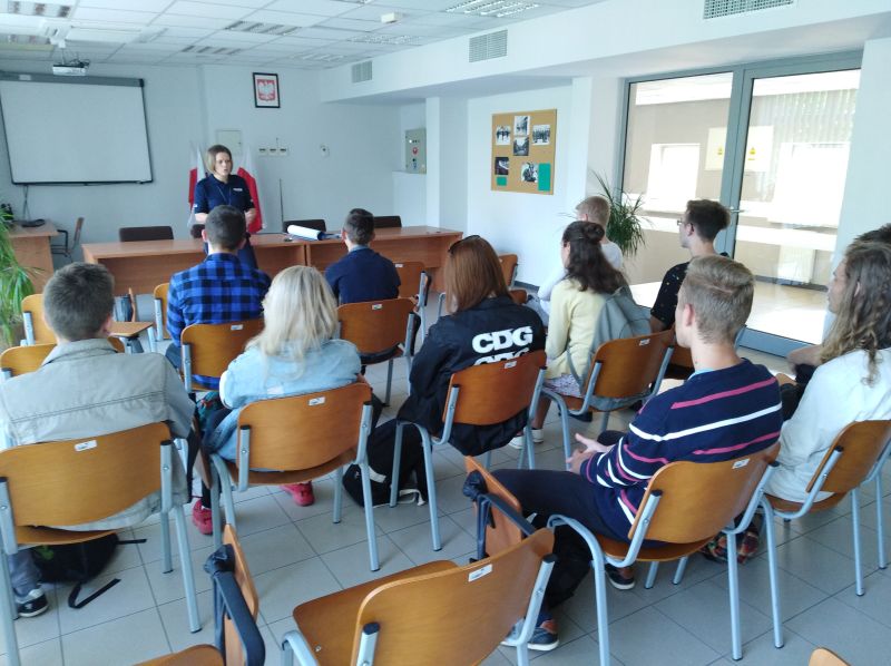 Lekcja poglądowa rozpoczęła się od pokazania uczniom miejsc pracy policjantów poszczególnych wydziałów. Najwięcej zainteresowania wzbudziło tradycyjnie stanowisko kierowania, ale również pomieszczenie dla osób zatrzymanych oraz pokój technika kryminalistyki. Młodzież zobaczyła także „niebieski pokój” i miejsce pracy profilaktyków.