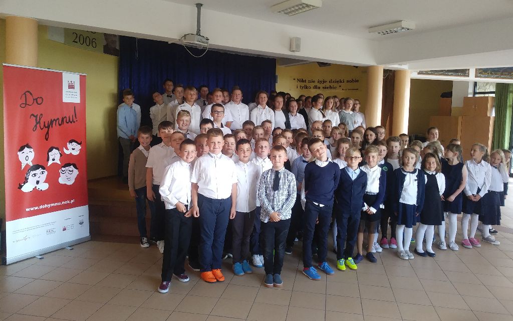 W grupowym wykonaniu wzięło udział 100 uczniów z klas od trzecich do ósmej, co stanowi 70% wszystkich uczniów.