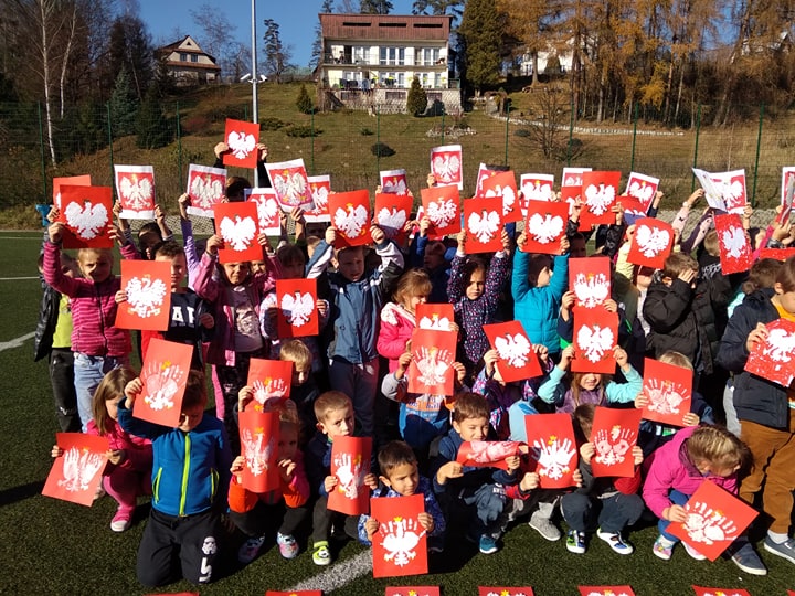 Każda z klas wykonała godło narodowe inną techniką. Wszystkie prace zostały uwiecznione na grupowym zdjęciu, a następnie ozdobią korytarz szkoły.