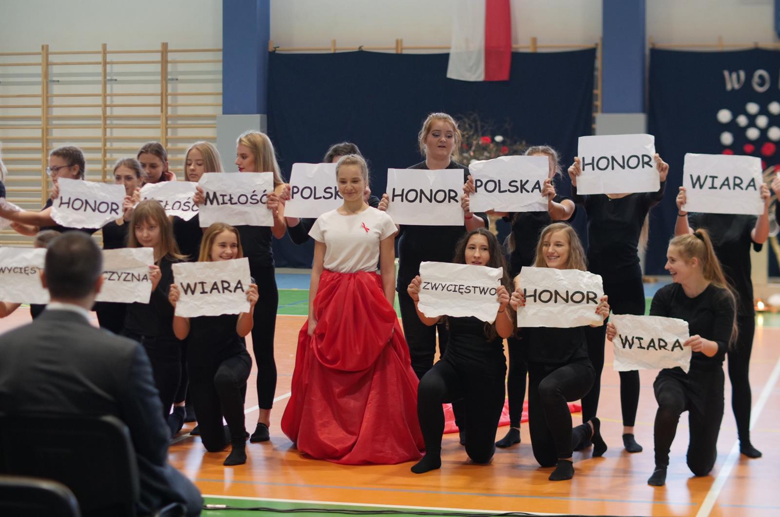 Kulminacyjnym punktem obchodów niepodległościowych było uroczyste widowisko patriotyczne pt. „Wolność nam zadana” przygotowane przez uczniów szkoły. Jednym z ważnych wydarzeń piątkowego święta było odśpiewanie hymnu narodowego w ramach ogólnopolskiej akcji „Rekord dla Niepodległej”. Blisko półtora tysiąca uczniów i nauczycieli w podniosłej atmosferze odśpiewało naszą narodową pieśń.