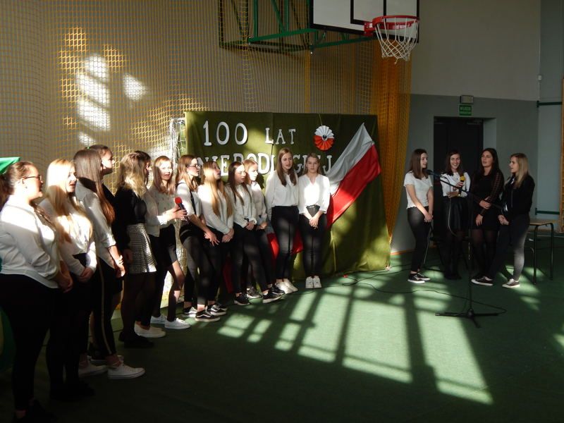 W ramach uczczenia 100-lecia odzyskania przez Polskę niepodległości odbył się w sali gimnastycznej koncert pieśni legionowych i nie tylko. Brali w nim udział uczniowie trzynastu klas, którzy sami dokonali wyboru utworu, przygotowali jego aranżację oraz wykonali go.
