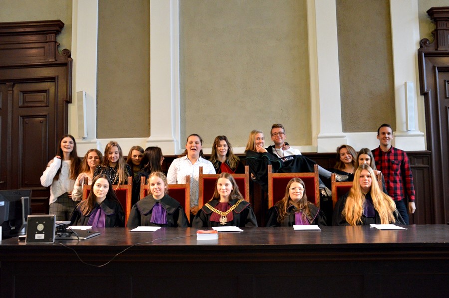 Pod koniec listopada klasa 1b Liceum Ogólnokształcącego z dyrektorem Robertem Dębskim, udała się do Nowego Sącza w ramach projektu Prawo w praktyce, który realizowali pod kierunkiem Sędziego Sądu Okręgowego w Nowym Sączu, Jacka Gacka. Pierwszym punktem wycieczki było zwiedzanie Zakładu Karnego. Wychowawca, oprowadzający uczniów przybliżył im sytuację, jaka panuje zakładzie karnym . Mogli oni zobaczyć jak wyglądają cele, kaplica, sale widzeń, świetlice, w których więźniowie pod nadzorem spędzają czas. Uczniowie zgodnie stwierdzili , że wizyta w Zakładzie Karnym, zmusza do zastanowienia się nad losem więźniów. Kolejnym punktem wycieczki był Sąd Okręgowy, w którym pierwszoklasiści mieli okazję przeprowadzić swoją pierwszą rozprawę sądową .W rolę przewodniczącego składu sędziowskiego wcieliła się Marzena Rajczak, sekretarzem była Klaudia Jankowska, drugim sędzią Wiktoria Wąchała, a ławnikami Barbara Mikowska, Karolina Sas oraz Amelia Kundziarz. Na ławie oskarżonych siedział Szymon Plewa . Jego obrońcą była Gabriela Wolska. Natomiast miejsce dla pokrzywdzonych zajmowała Małgorzata Knutelska prokuratorem była Anna Śledź, a doradcą Karolina Kacwin . Sprawa dotyczyła morderstwa pana Andrzeja, brata pokrzywdzonej. Bardzo ważną rolę podczas rozprawy odgrywali świadkowie, czyli Roksana Pawlikowska, Sylwia Jankowska, Małgorzata Mędoń, Oliwia Jankowska, Aleksandra Żołądek, Damian Kazimierczak, a także dyrektor Robert Dębski. W rolę dziennikarza wcielił się Mateusz Zaporski. Nad całą rozprawą czuwał sędzia Jacek Gacek, który przygotował licealistów do odegrania wybranych ról. Na zakończenie uczniowie złożyli podziękowania na jego ręce. Wyjazd bardzo podobał się licealistom. Miał ogromne walory wychowawcze i edukacyjne.