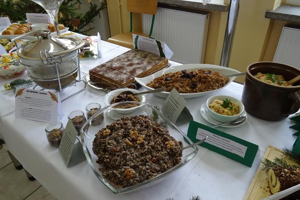 W konkursie brało udział 15 dwuosobowych zespołów z klas o profilu gastronomicznym. Na specjalnie przygotowanych wigilijnych stołach gościły: m.in. gołąbki postne, kasza z grzybami, wieniec drożdżowy, zupa grzybowa z łazankami, pieczone pierogi z kapustą i grzybami, krokiety wigilijne, kluski z makiem, kutia, barszcz postny z kołdunami grzybowymi, dzyndzałki, makówka, sałatka wigilijna , pierniki, galaretka śledziowo-jarzynowa, piernik przekładany. Warto podkreślić fakt, iż wszystkie potrawy zostały pięknie udekorowane i profesjonalnie podane.
