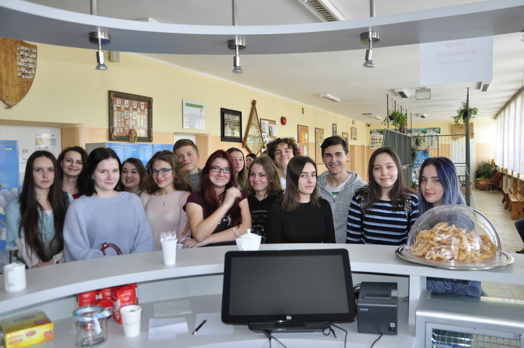 Praktycznie wszyscy włączyli się w „Szkolne święto pączka”. Jedni smażyli, inni degustowali, a jeszcze inni profesjonalnie serwowali kawkę, która wybornie smakowała z pączkami i faworkami. Szkolny barek w czwartek tętnił życiem. "Szefowali" w nim uczniowie z klasy III technikum żywienia i usług gastronomicznych, którzy ukończyli kurs barmański i z dumą prezentowali swoje umiejętności, profesjonalnie serwując kawę z ekspresu oraz herbatę.