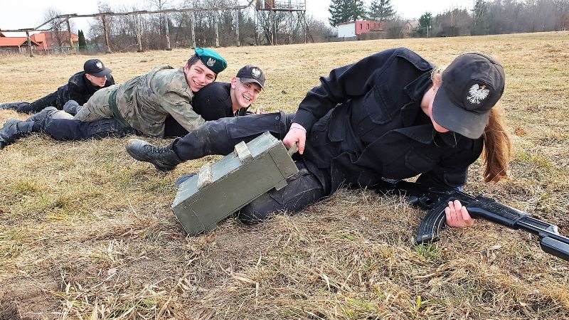 Pod okiem zawodowców z 5. Batalionu kadeci szlifowali umiejętności poruszania się z bronią, zajmowania i opuszczania stanowisk strzeleckich, ewakuowania rannych z pola walki, dostarczania amunicji w skrzynkach, czołgając się. Oprócz tego, uczyli się wykonania stanowiska strzeleckiego do postawy „leżąc”.