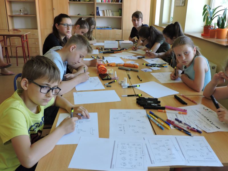 Agata Jakuszko – Sobocka znana myślografikom trenerka Akademii Sketchnotingu poprowadziła dla uczniów live – „Rysuję na żywo”- „Lista wakacyjnych przygód”. Za pośrednictwem Facebooka p. Agata opowiadała o naszym projekcie, rysowała to, o co poprosili ją uczniowie w komentarzach. Grupa szkolnych myślografików zdobyła kolejne umiejętności w rysowaniu ikon, postaci, miejsc związanych z wakacjami. Stawianym przez panią Jakuszko zadaniom, uczniowie sprostali rewelacyjnie - wykonali piękne listy wakacyjnych przygód. Kolejny raz kształcili kompetencje kluczowe m.in. w zakresie wykorzystywania technologii informatycznych.