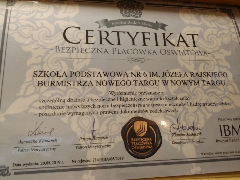 Certyfikat jest wyrazem uznania dla jednostek edukacyjnych wobec wieloletniej bezwypadkowej działalności, jak również skuteczności działań na rzecz zapewnienia bezpieczeństwa uczniów na terenie szkoły i w jej bezpośrednim otoczeniu.