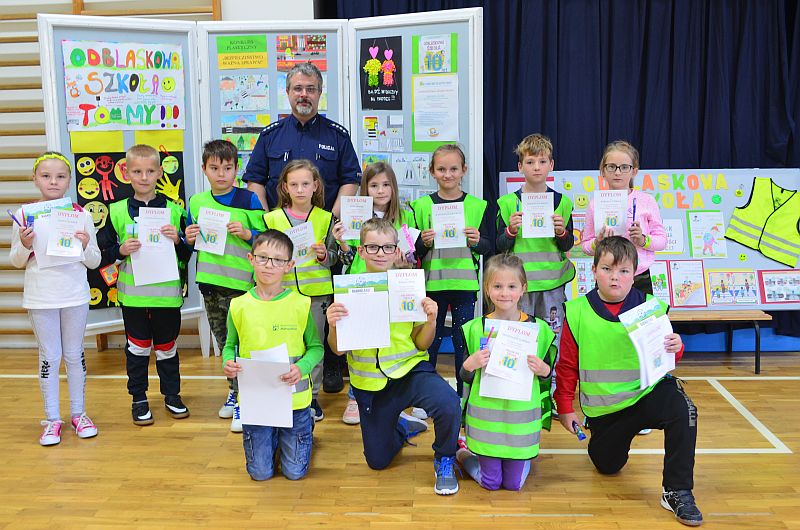 Wszystkie dzieci otrzymały odblaski, a w tym dniu odbyło się również rozstrzygnięcie konkursu plastycznego: „Bezpieczeństwo – ważna sprawa!” oraz konkursu wiedzy o ruchu drogowym. Wszystkim laureatom wręczono dyplomy oraz nagrody.
