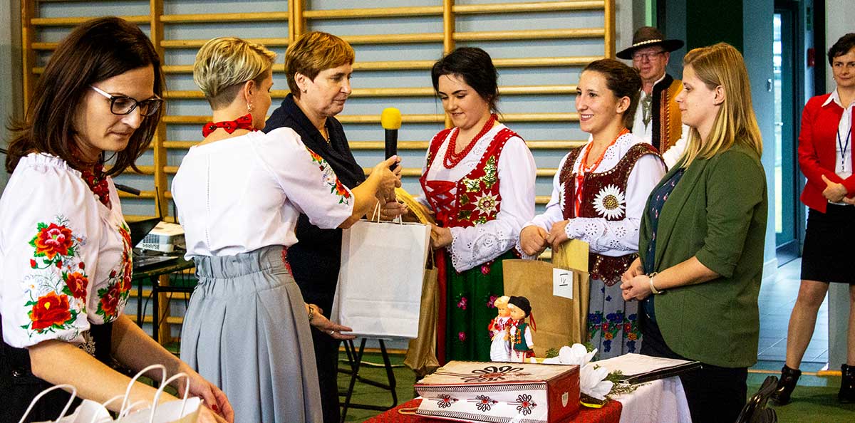 Konkurs przebiegł w miłej atmosferze, pełnej kolorów regionalnych strojów, śpiewu i regionalnych potraw. Dodatkowo wydarzenie uświetnił występ zespołu regionalnego - uczennic Zespołu Szkół Ekonomicznych.