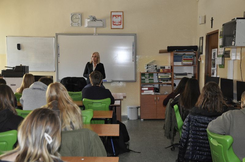 Celem kilku wizyt w szkole pani rzecznik była edukacja konsumencka młodzieży.