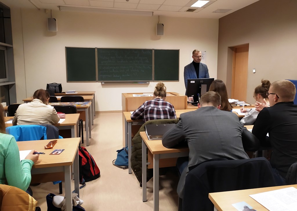 Uczestnicy inauguracyjnej odsłony wydarzenia pn. „Rozwiąż język! Czyli jak pisać teksty medialne” mieli okazję poznać sposób użycia języka w wypowiedziach dziennikarskich, budowę i konsytuację tekstów, strukturę informacyjną oraz jej zróżnicowanie ze względu na typ kanału. Spotkanie poprowadził dr Krzysztof Waśkowski, zastępca dyrektora Instytutu Nauk Humanistyczno-Społecznych i Turystyki ds. studenckich i kształcenia. O oprawę fotograficzną oraz współorganizację wydarzenia zadbał Dział Promocji i Współpracy (Anna Gródek).