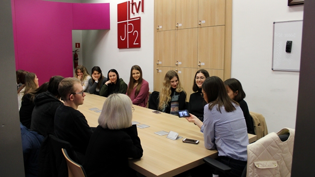 Część pierwsza zajęć odbyła się w studiu telewizyjnym przy ulicy Franciszkańskiej 4. Młodzi ludzie poznawali tajniki pracy dziennikarza pod kierunkiem dr Pauliny Guzik (adiunkt w Instytucie Dziennikarstwa i Komunikacji Społecznej Uniwersytetu Papieskiego Jana Pawła II w Krakowie, prowadzącej „Między Ziemią a Niebem” w TVP1, szefowej biura Mediów Zagranicznych podczas Światowych Dni Młodzieży 2016) i mgr. Piotra Ćwika ( kierownika studia telewizyjnego TV UPJP2). Następnie wysłuchali wykładu wygłoszonego przez dyrektor instytutu dr Katarzynę Drąg poświęconego etycznym wymiarom komunikacji.