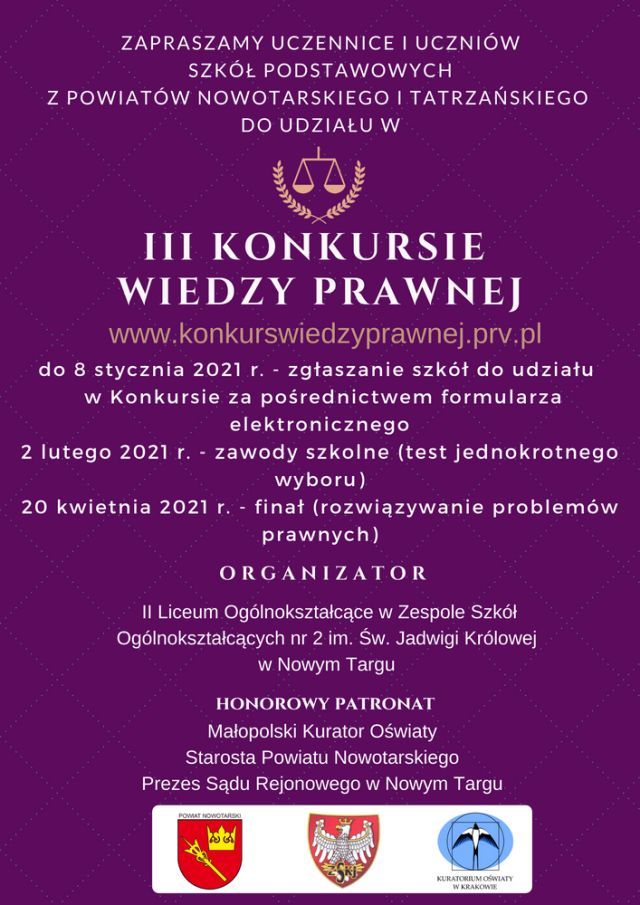 Celem konkursu jest pogłębienie wiedzy o prawie, kształtowanie umiejętności korzystania z aktów prawnych oraz aktywne wspieranie postaw obywatelskich.