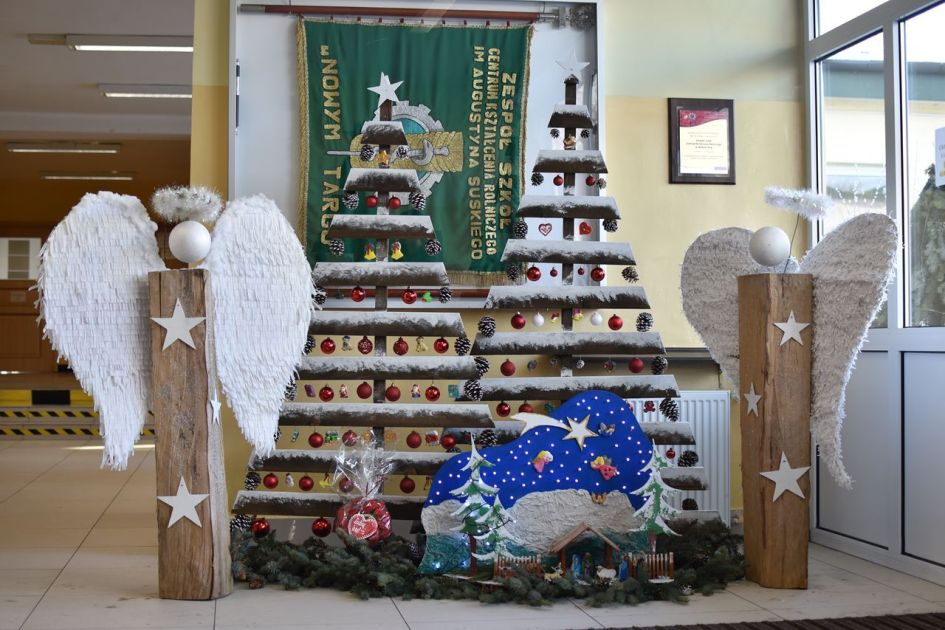 Przed wejściem do szkoły rozsiedli się pewnie i dostojnie Mikołaje, którzy nie zważając na kapryśną aurę wytrwale czekają. Kora, szyszki, gałązki, kasztany i wszystko to, na co pozwalała wyobraźnia posłużyły uczniom z technikum kształcącego w zawodzie technik architektury krajobrazu do stworzenia magicznego klimatu. W szkole zagościły ekologiczne i własnoręczne wykonane ozdoby: stroiki, choinki, anioły i skrzaty. Prace, przyszli architekci krajobrazu tworzyli pod nadzorem pań Zofii Wójtowicz i Doroty Zmarzlińskiej. I zrobiło się pięknie…